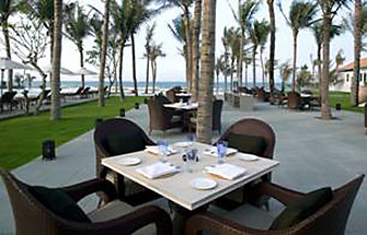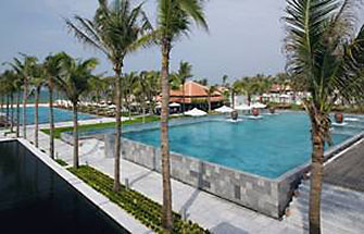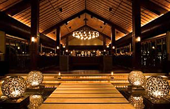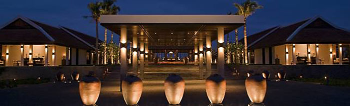 Entrée des Nam Hai. Vom erhöht liegen-den Empfang blickt