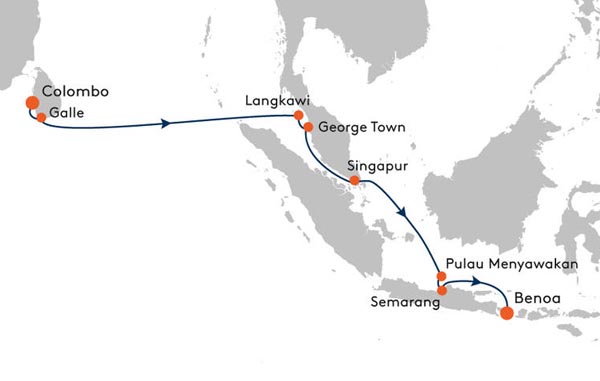 Bali-Deutschland Morgens Ausschiffung und Reederei-Transfer zum Lini- enflug zurück nach Europa. (Zu empfehlen: Reederei-Nachprogramm Bali.)