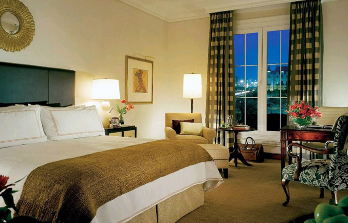 Zimmer+Suiten: 116 Zimmer (ab 40 qm) und 49 Suiten (ab 60 qm), davon 8 im La Mansión. Die Gästezimmer haben alle einen Sitz-Bereich mit Schreibtisch, fast aus-schließlich ein Kingsize-Bett und einen begehbaren Klei-derschrank. Dazu ein großzügiges Marmorbad mit sepa-rater Dusche sowie die übliche, durchdachte Four Sea-sons-Ausstattung. Der Blick geht in den Garten, auf den Pool, den Fluss oder über die Stadt.