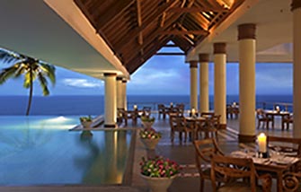 Bar mit Blick auf die Küste Keralas, Strandrestaurant Tides